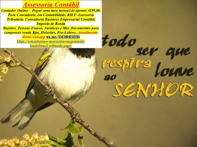 Consultoria para Prestadores de Serviços, Profissionais Autônomos e LiberaisContador – Imposto de Renda – Assessoria Contábil –Cambé... Declaração anual do Mei Consultoria Online só r$ 55,00/mês- Contabilidade e Recursos Humanos Imposto de Renda 2024 - Driblar/esconder de bancos/financeiras bloqu...