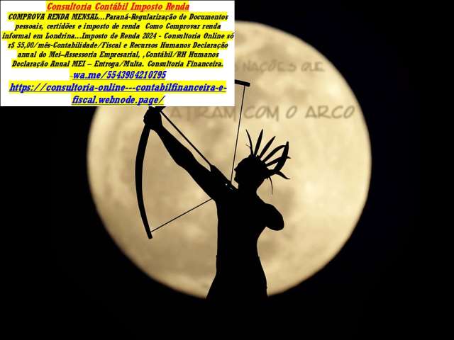 Regularização de Documentos para MEI, certidões e imposto de renda Como Comprovar renda informal em Londrina...Imposto de Renda 2024 - Consultoria Online só r$ 55,00/mês-Contabilidade/Fiscal e Recursos Humanos Declaração anual do Mei–Assessoria Empresarial, ,Contábil/RH Humanos Declaração Anual M...
