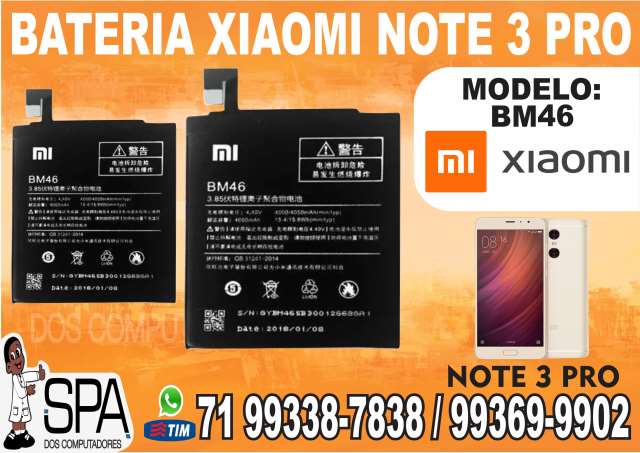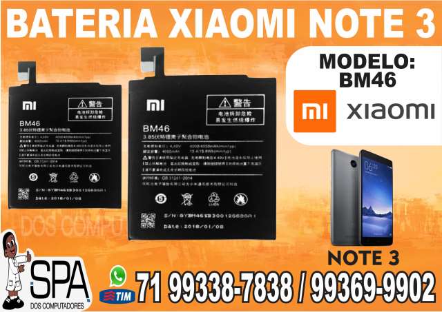 SPA DOS COMPUTADORES (71) 99338-7838 ZAP / 98830-3664 / 99369-9902 ENDEREÇO: RUA LAURO DE FREITAS, Nº 103-A, SÃO CRISTÓVÃO SALVADOR-BA. -FABRICANTE: REDMI -MODELO: BM46 -TENSÃO: 3.85V -CAPACIDADE: 3900mAh -ACEITAMOS TRANSFERÊNCIAS PIX -PAGAMENTO EM ESPÉCIE -ACEITAMOS CARTÕES DE CRÉDITO E DÉBITO M...