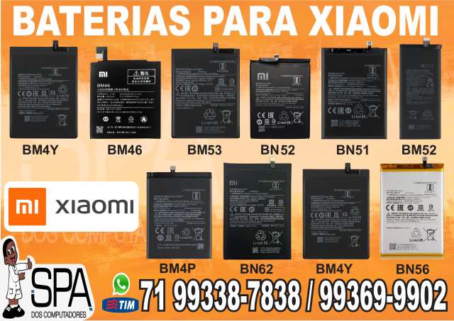 SPA DOS COMPUTADORES (71) 99338-7838 ZAP / 3034-1313 / 99369-9902 ENDEREÇO: RUA LAURO DE FREITAS, Nº 103-A, SÃO CRISTÓVÃO SALVADOR-BA. BATERIAS XIAOMI -FABRICANTE: REDMI VÁRIOS MODELOS COMPATÍVEIS COM DIVERSOS MODELOS DE CELULARES/APARELHOS, DENTRE ELES: -XIAOMI REDMI NOTE 8 PRO -XIAOMI POCO X2 -...