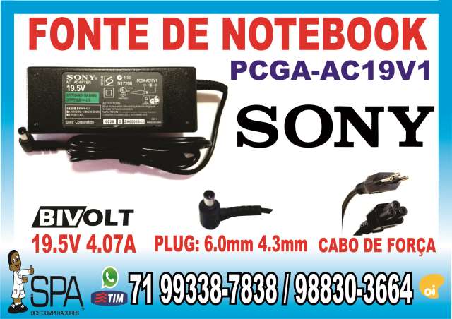 Carregador Sony PCGA-AC19V1 19.5V 4.07A Plug 6.0mm x 4.3mm em Salvador Ba