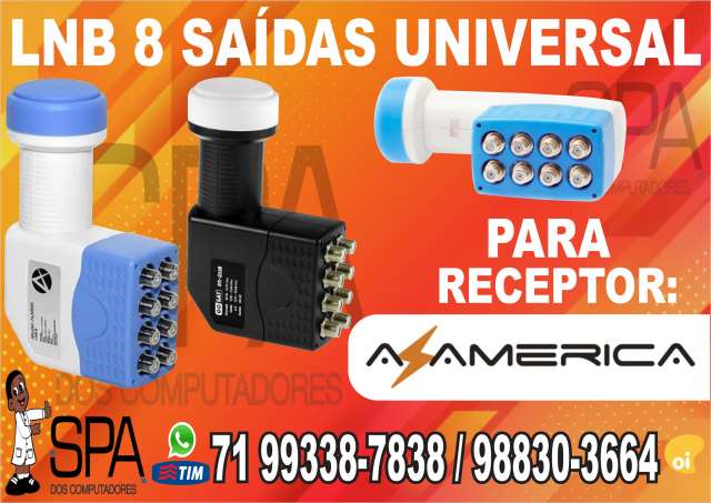 SPA DOS COMPUTADORES (71) 99338-7838 ZAP / 3034-1313 / 99369-9902 ENDEREÇO: RUA LAURO DE FREITAS, Nº 103-A, SÃO CRISTÓVÃO SALVADOR-BA. LNB UNIVERSAL DE 8 SAÍDAS PARA APARELHOS -NOVA -FULL HD -LNB UNIVERSAL -8 SAÍDAS -ÓTIMO GANHO DE SINAL -COMPATÍVEL COM TODOS OS APARELHOS DE TV -PAGAMENTO EM ESPÉ...